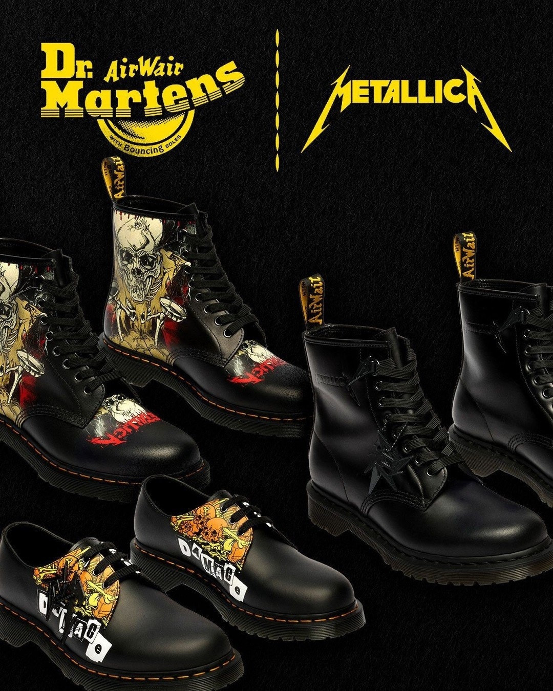 В коллаборации Dr. Martens x Metallica вышли две модели обуви для преданных фанатов хэви-метал группы. В коллекцию вошли кожаные ботинки 1460 со шнуровкой на 8 отверстий и принтом в виде графики с двух мировых турне Metallica 1980-х годов и та же модель в чёрном цвете с тисненым логотипом группы на щиколотке и надписью «5th Member» на пятке.